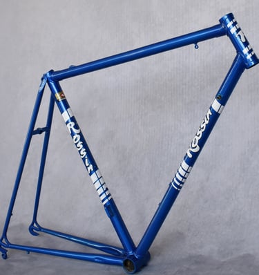 A classic respray revives vintage steel frames to their original glory, ensuring durability and aesthetic appeal for cycling enthusiasts who appreciate timeless craftsmanship and style.